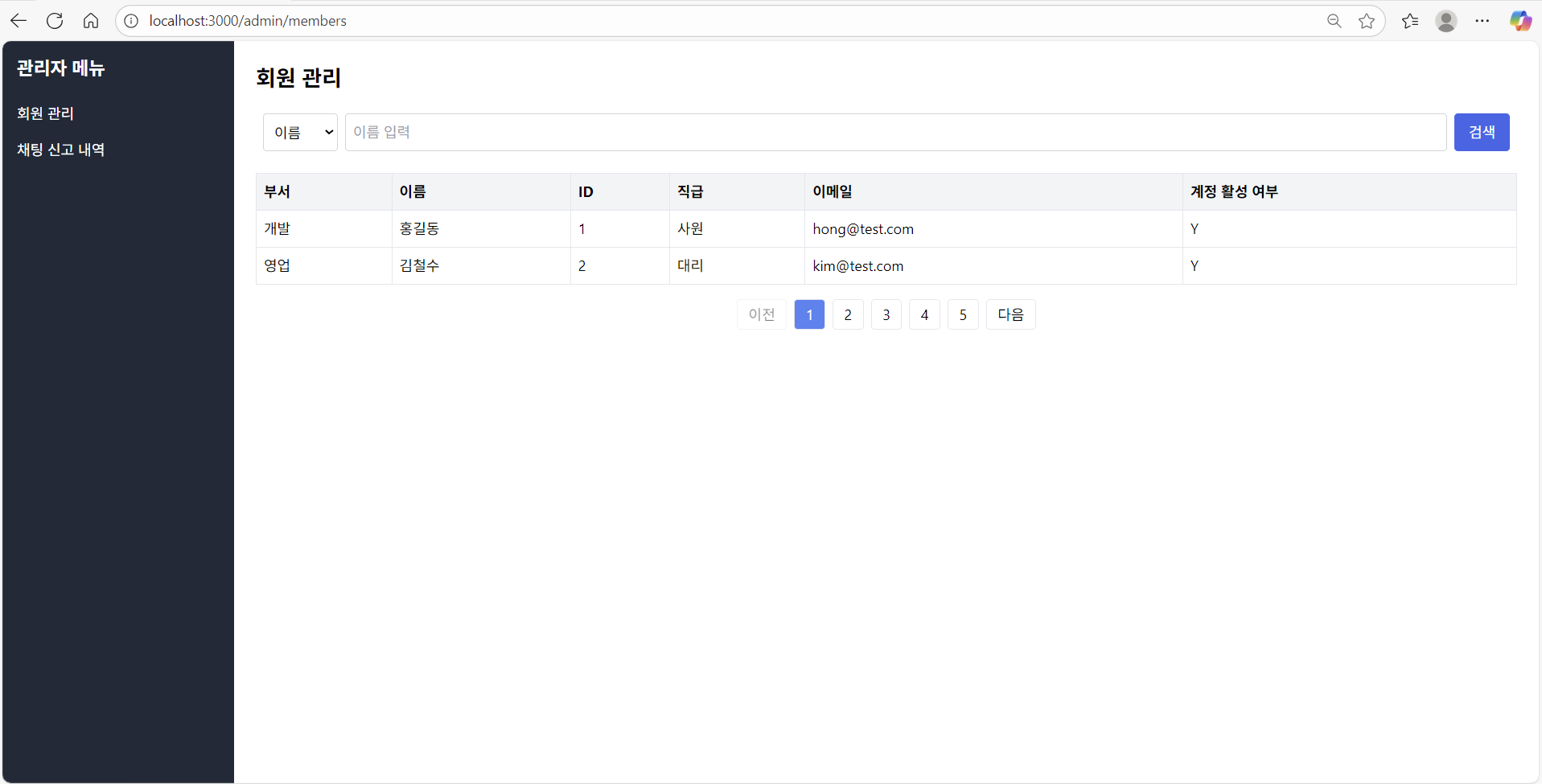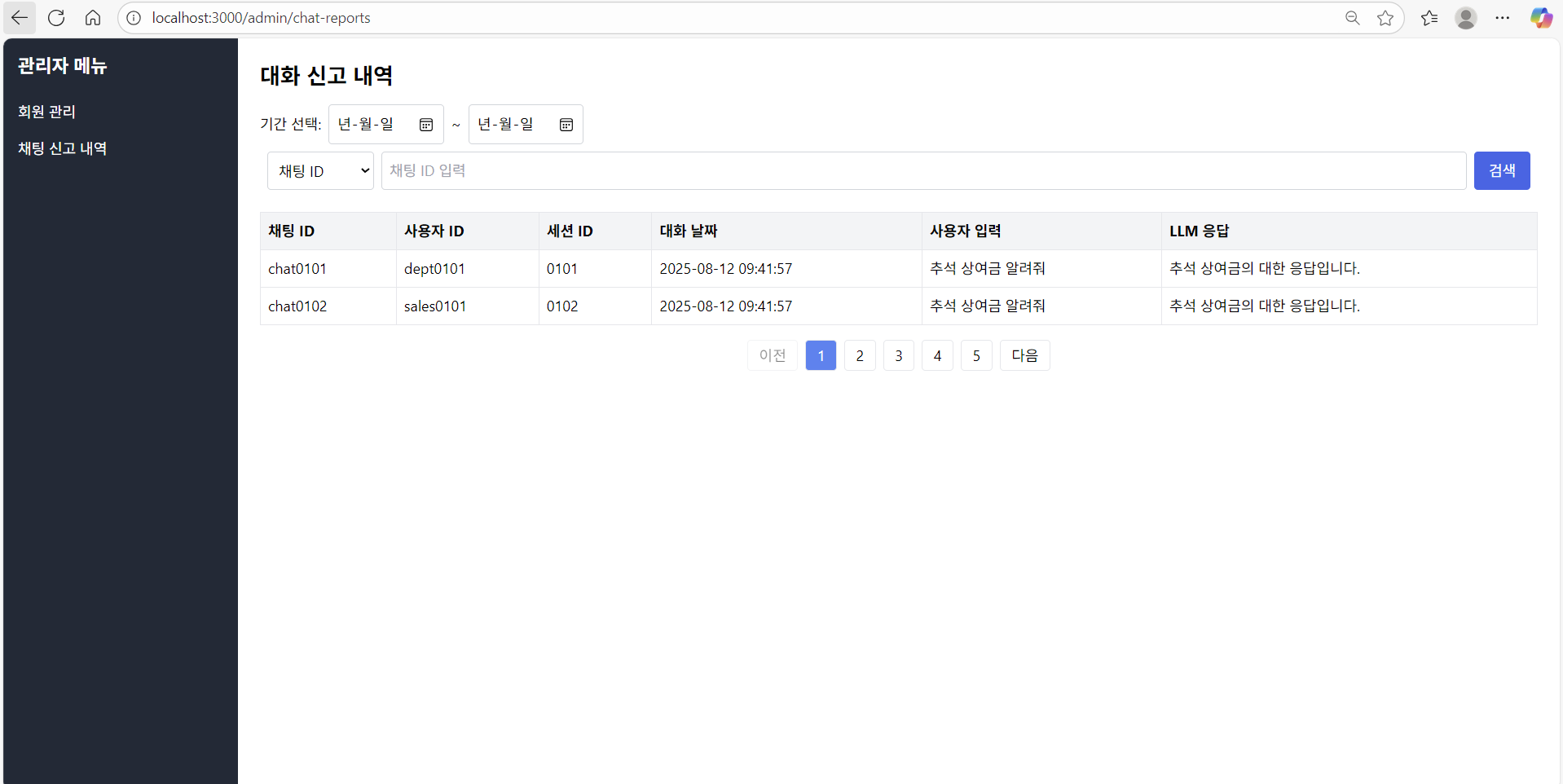 React로 첫 화면 구현! React에 대한 대략적인 공부를 마친 뒤, 관리자 화면 두 개를 구현했다. 백엔드 API 연결하기 전, 앞단에 보이는 화면만 만들었다. Figma로 뽑은 화면 설계서를 GPT에 넣어줬더니 코드를 잘 출력해주어서 큰 어려움은 없었다. 물론 무작정 복사 붙여넣기 한 게 아니라, GPT가 써준 코드를 하나하나 읽어보고 필요한 부분을 수정해나갔다. 예전에는 GPT가 써준 코드를 읽어보지 않고 아무 생각 없이 전체 복사 붙여넣기를 했는데, 이와 비교했을 때 발전했다고 볼 수 있겠다.