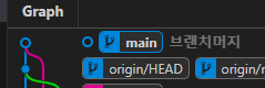 다음과 같은 충돌이 일어났고 develop 브랜치의 수정 값을 수락하여 병합완료한 이 후, '브랜치머지' 메세지와 함께 커밋해주었다.