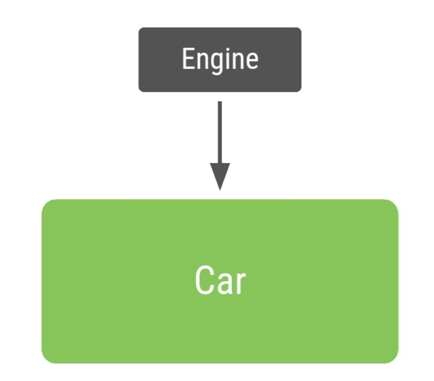 Car의 각 인스턴스는 초기화 시 Engine 객체를 생성자의 매개변수로 받는다. 또한 다양한 타입의 Engine을 가진 Car 인스턴스를 생성할 수 있다.