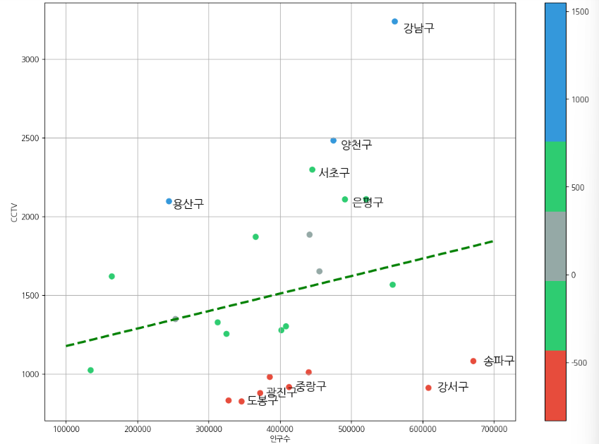 인구가 40만인 구에서 서울시의 전체 경향에 맞는 적당한 CCTV 수는?