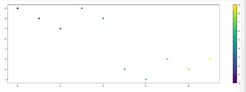 plt.scatter(t, y, s=50, c=colormap, marker="<")
