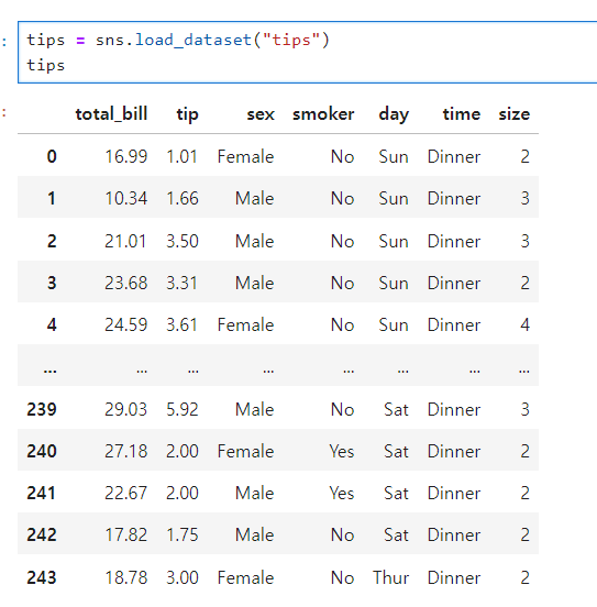 - seaborn에는 실습용 데이터가 몇 개 내장되어 있다