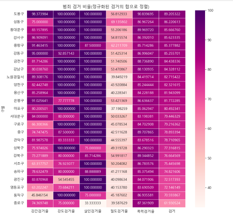 - "검거" 컬럼을 기준으로 정렬