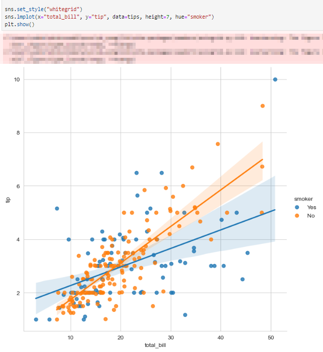 - lmplot : x값과 y값의 사이 관계 파악