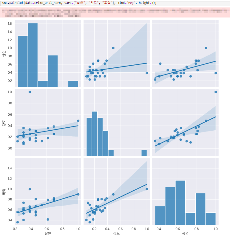 - 강도, 살인, 폭력에 대한 상관관계 확인