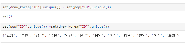 print(set(pop["ID"].unique()) -set(draw_korea["ID"].unique()))