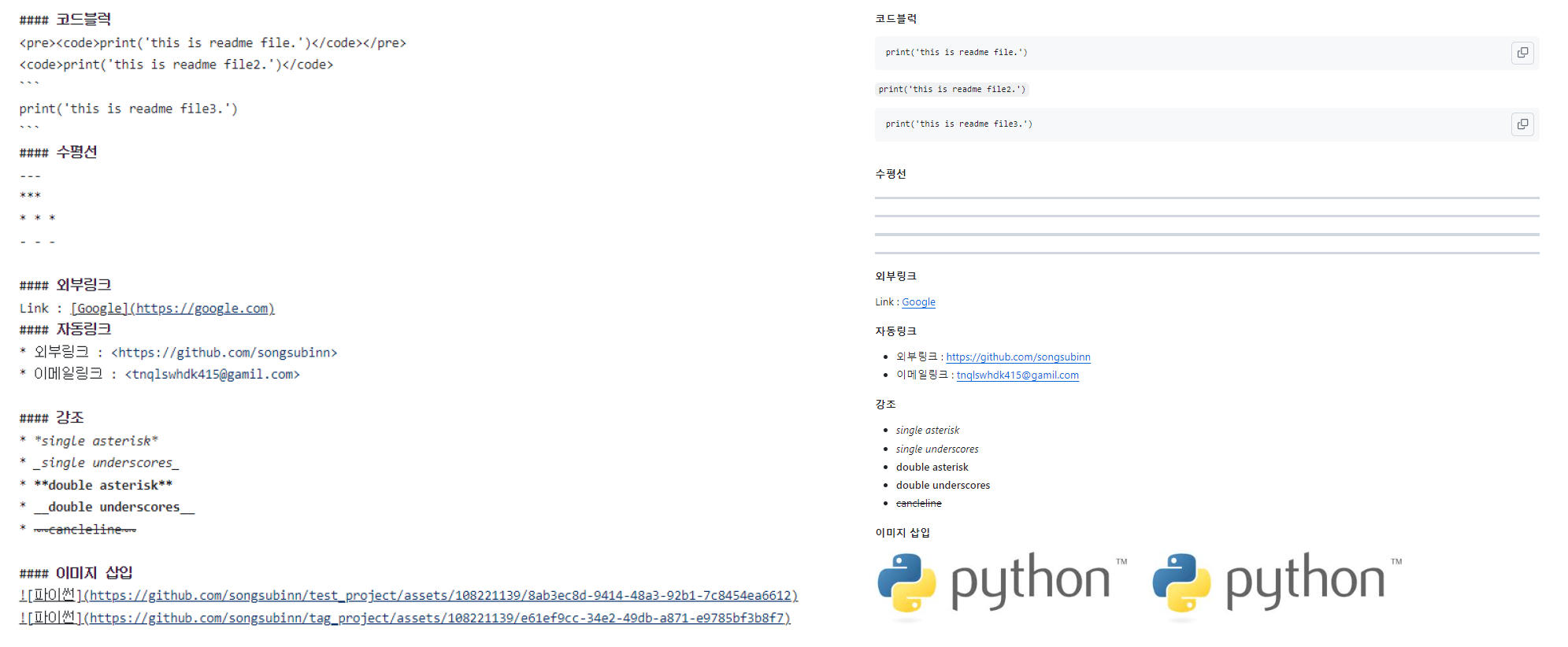 프로젝트에 대한 설명, 사용방법, 라이센스, 설치법과 같은 부분에 대해 기술하는 파일 (나, 직장동료, 프로그램 사용자를 위해 존재)