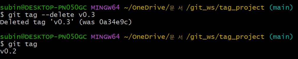 특정 버전(commit)에 tag를 달아놓을 필요가 있을 때 사용