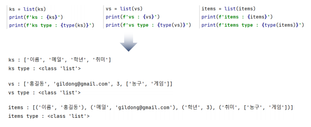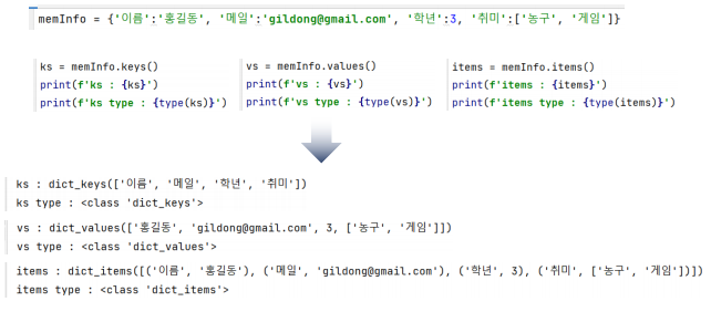 딕셔너리 조회 : 키를 이용해서 값을 조회한다.