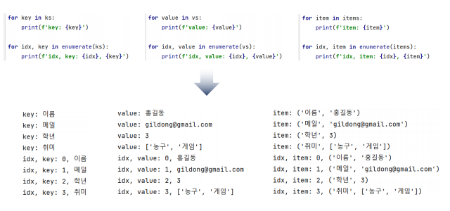 키 (key)와 값(value)를 이용해서 자료를 관리한다.