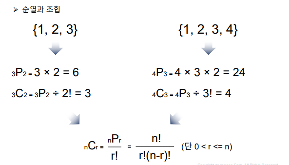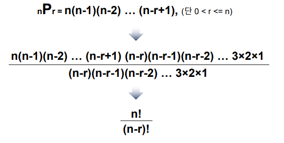 순열 : n개에서 r개를 택하여 나열하는 경우의 수 (nPr)