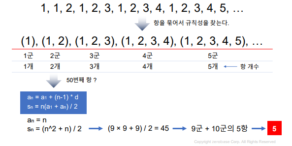 군 수열 : 여러 개의 항을 묶었을 때 규칙성을 가지는 수열
