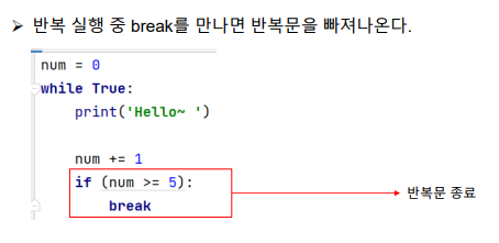 - 조건에 맞지 않으면 반복을 중단