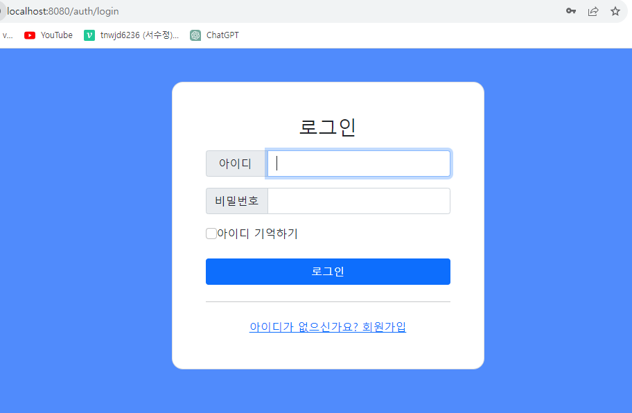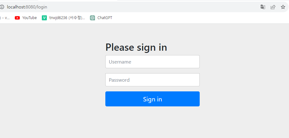 프로젝트를 실행하고 접속해보면 로그인 창이 뜬다.