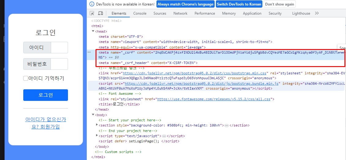 서버 csrf 토큰을 만들어서 페이지에 넣어줌