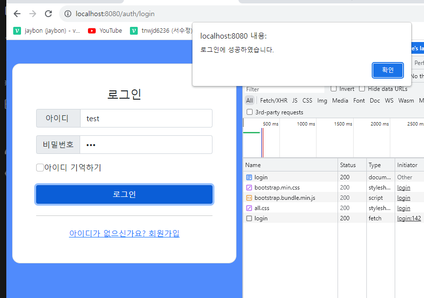 로그인하면 만들어두었던 로그인 화면이 나온다.