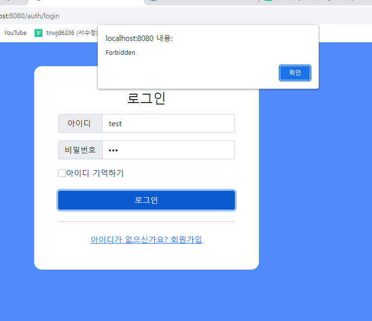 원래있던 아이디, 비밀번호도 로그인이 안되었다.