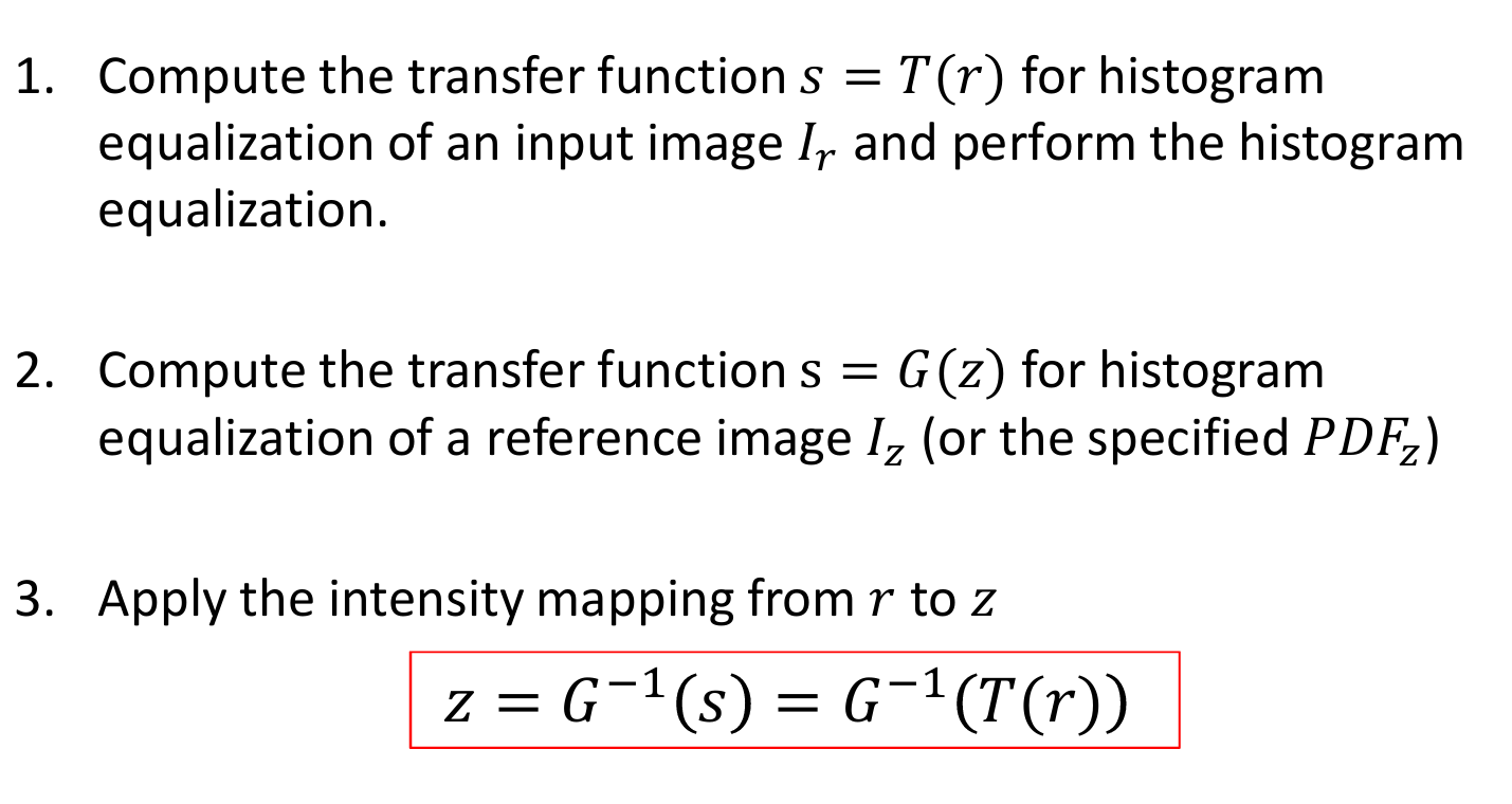 - 입력에서 같은 intensity 값을 가진 픽셀들은 동일한 출력 intensity로 변환되어야 함