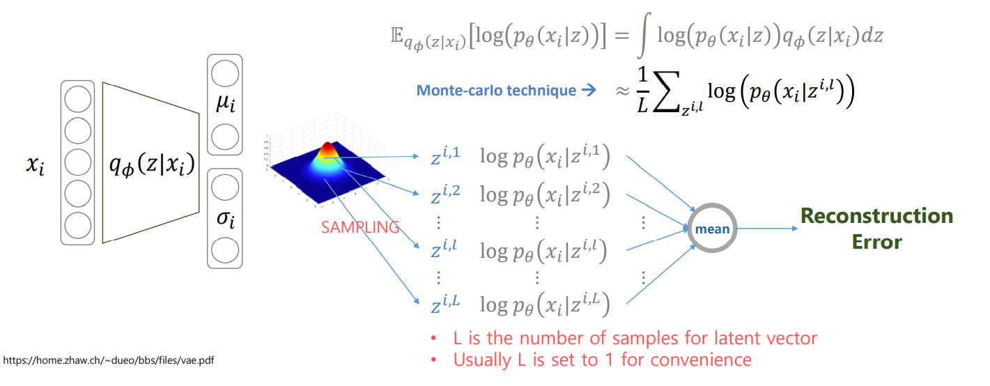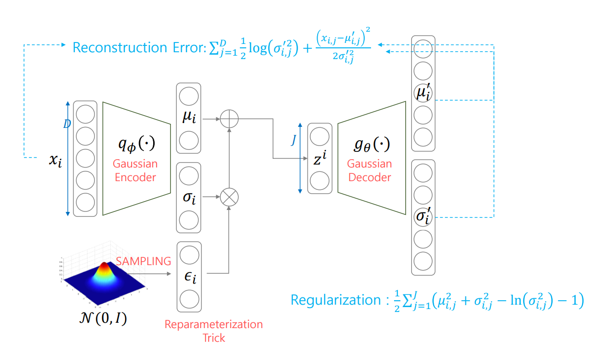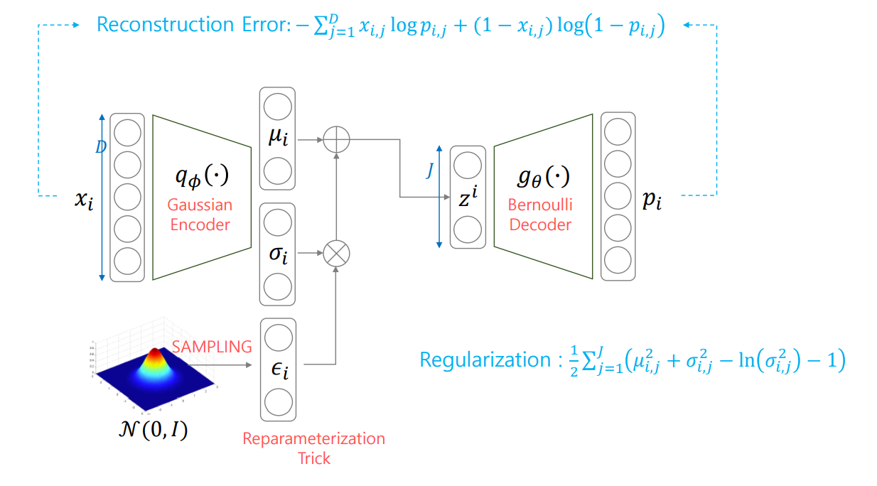 다시 Loss function을 보겠습니다. −Eqϕ(z∣xi)(log(p(xi∣gθ(z))))+KL(qϕ(z∣xi)∣∣p(z))