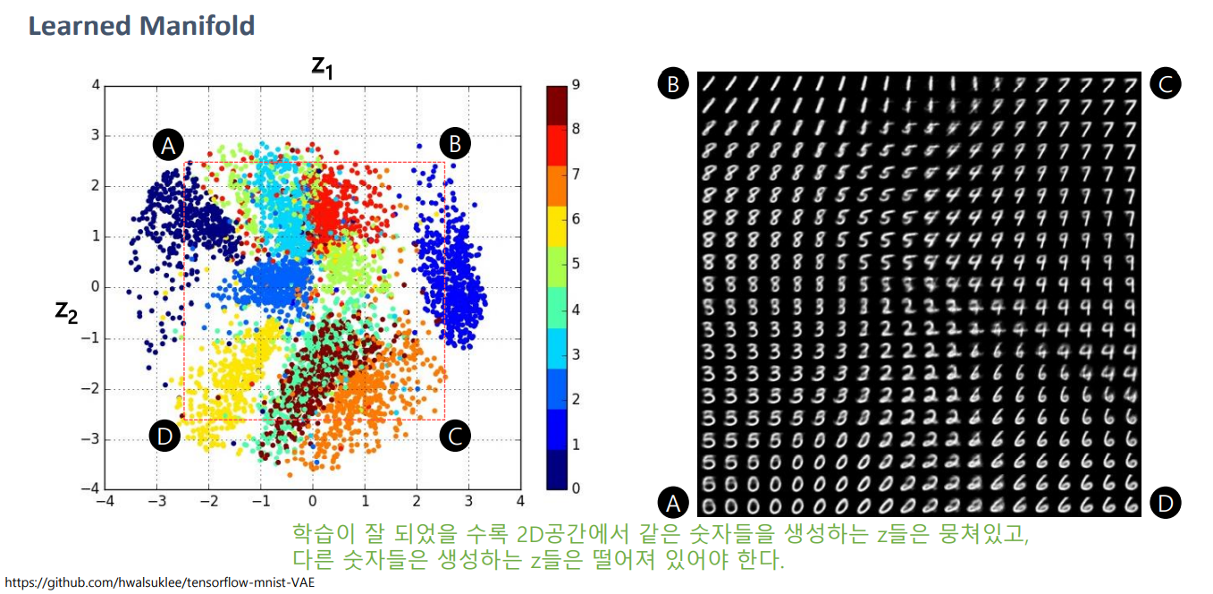 위 그림은 latent vector 즉, manifold를 시각화 한것입니다.