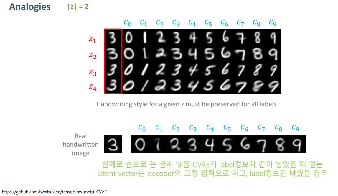 그러면 z에서는 label정보가 아닌 style의 정보만이 manifold에 mapping되는 거죠.
