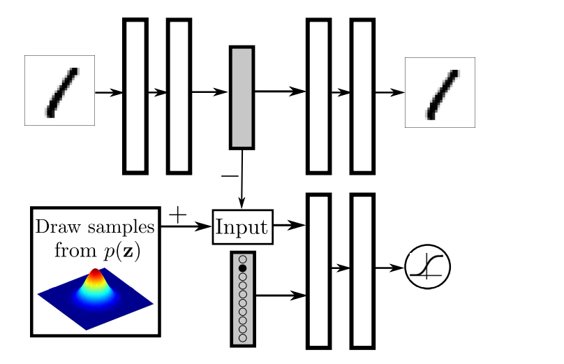 즉, 학습된 VAE으니 Encoder는 manifold를 우리가 알기 쉬운 N(0,I)으로 mapping해주는 역할을 합니다. 이를 위의 object function에서 보자면 μi,σi가 각각 0과 I가 되게끔 학습 된다는 것입니다. 따라서 Generator의 range가 상대적으로 쉬워지며 새로운 image를 generate할때 manifold를 찾는 것이 중요한데 그 manifold를 우리가 미리 정한 Gaussian으로 되게끔 학습 한다는 의미입니다.