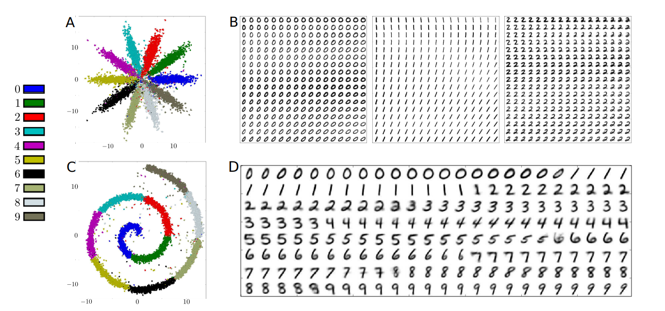 (A), (C)는 순서대로 AAE와 VAE를 prior를 gaussian으로 했응ㄹ때 manifold입니다.