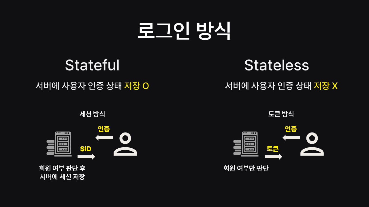 대표적인 로그인 방식은 stateful / stateless 두 가지로 나뉩니다.