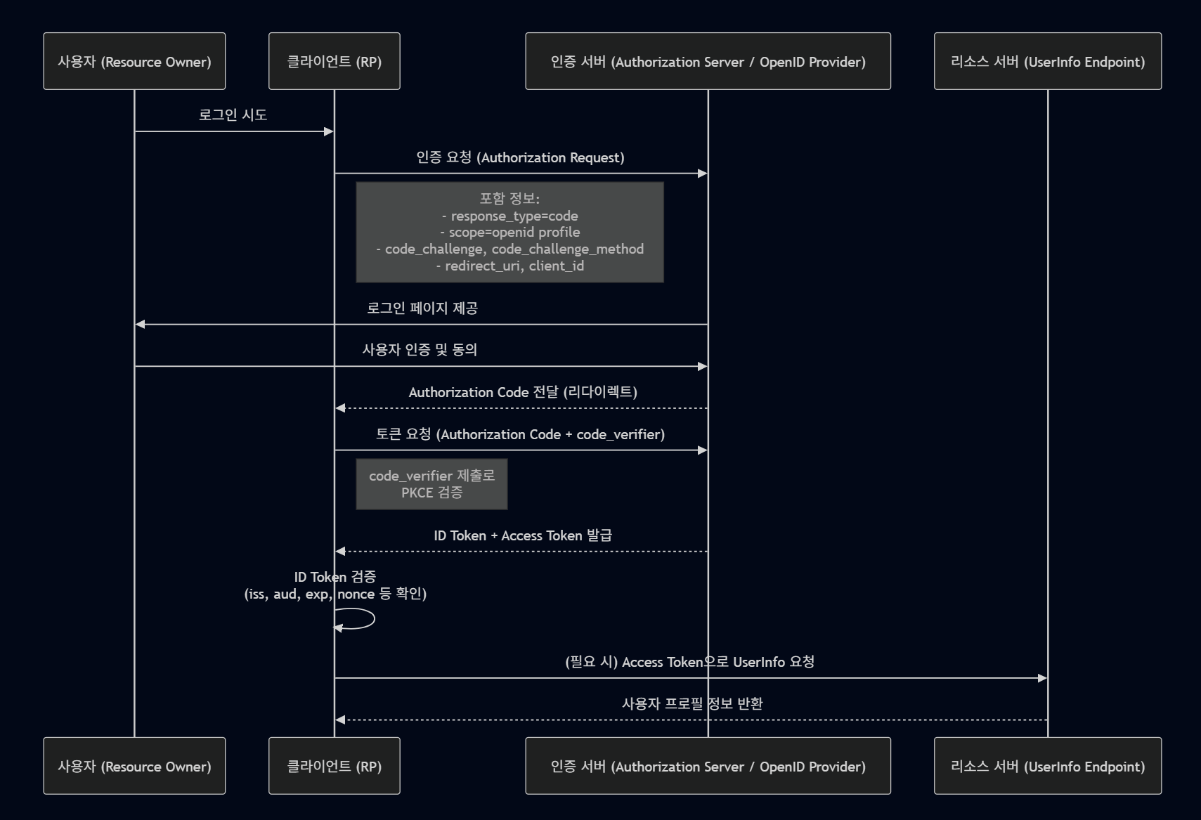 OIDC는 위 그림과 같은 방식으로 진행됩니다.