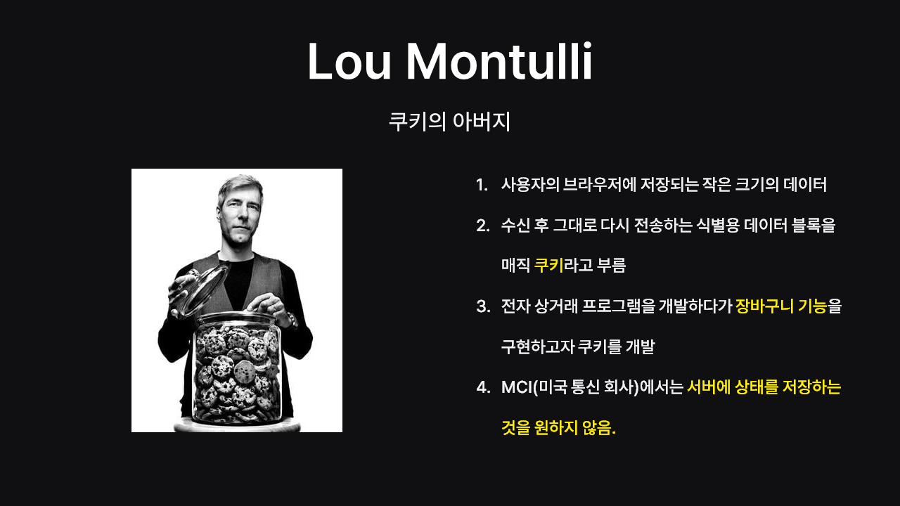 쿠키는 넷스케이프의 직원이었던 루 몬툴리(louis j montulli ii)에 의해 만들어졌습니다.