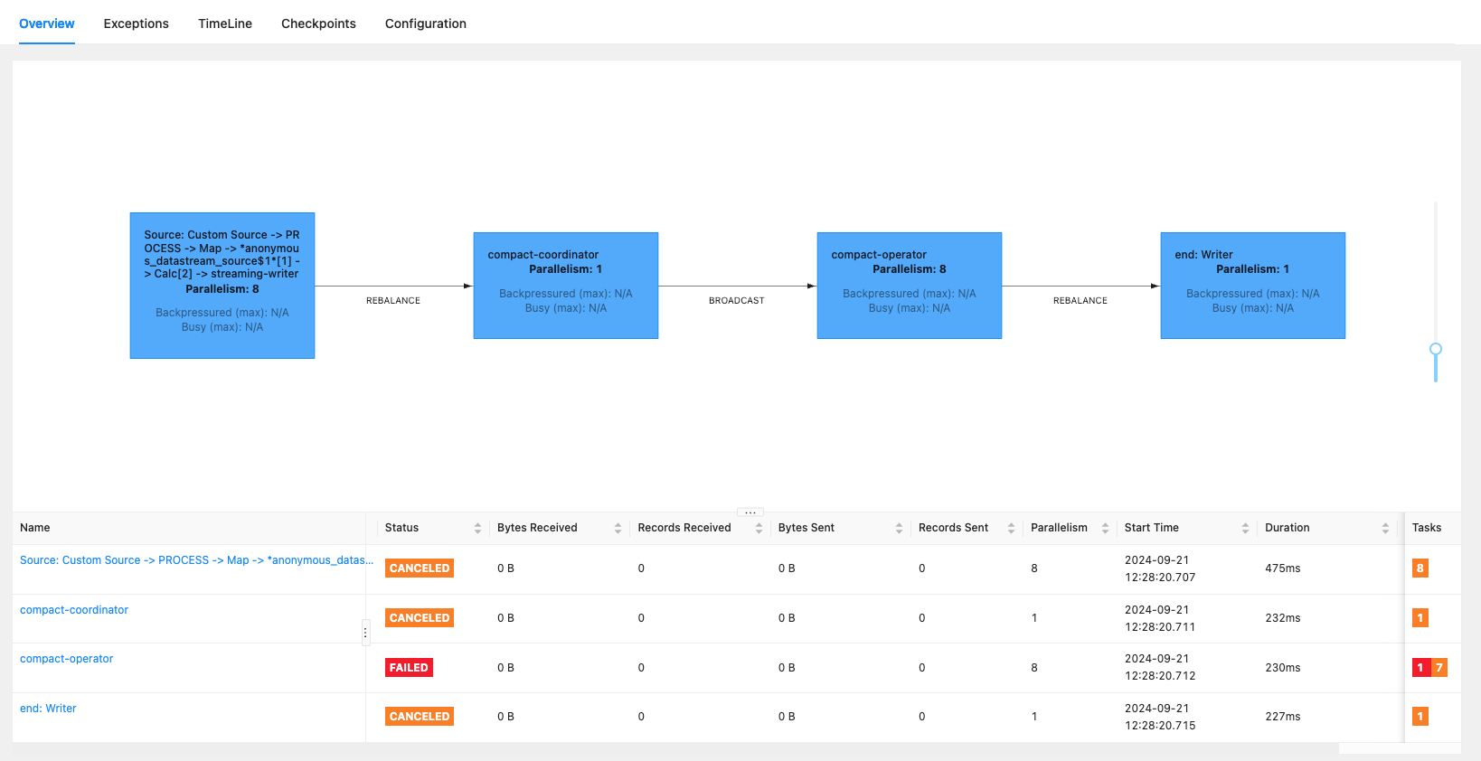 Failed 된 것을 확인 하였고, 장애 메시지와 함께 구글링 하였다.CompactOperator 클래스를 사용한다는 것을 알았다.CompactOperator 클래스에서 이전 체크포인트의 상태 값을 get() 및 put() 하게 되는데 이 과정에서 장애가 발생한 것이라 한다.filesystem connector 를 이용하여 AWS S3 로 Json 데이터를 write 할 때 auto-compaction 을 true 로 설정하여 사용하고 있다.filesystem connector 사용 시 flink-connector-files-1.19.0.jar 을 참조하는데, flink-connector-files 문서 를 보니까 table api 에서 auto-compaction 활성화 시 org.apache.flink.connector.file.table.stream.compact 클래스를 사용하는 것 같았다.java.util.NoSuchElementException 장애가 발생한 것 같다.at java.base/java.util.ArrayList$Itr.next(ArrayList.java:1000) 와 같은데 org.apache.flink.connector.file.table.stream.compact 소스 코드를 보면 java.util.ArrayList 를 import 하고 있다.if (context.isRestored()) {