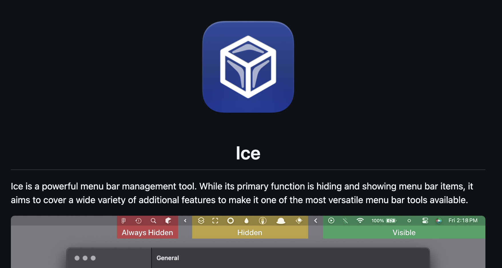 - 리서치 중 Github 에 jordanbaird/Ice 라는 오픈소스 메뉴바 툴을 찾았다.