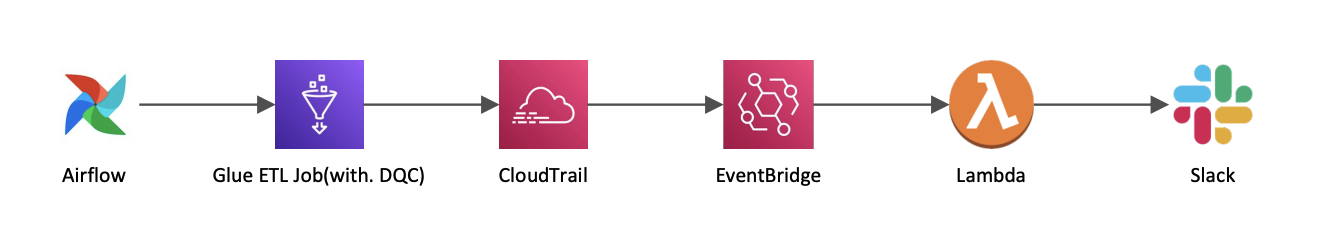 Glue data quality check 서비를 이용하여 data quality ruleset 을 관리하고 데이터 품질 검사하는 방법을 기록해본다.Glue 를 이용한 데이터 품질검사 및 Slack 알람 연동 기본 구성도는 아래와 같이 작업 하였다.