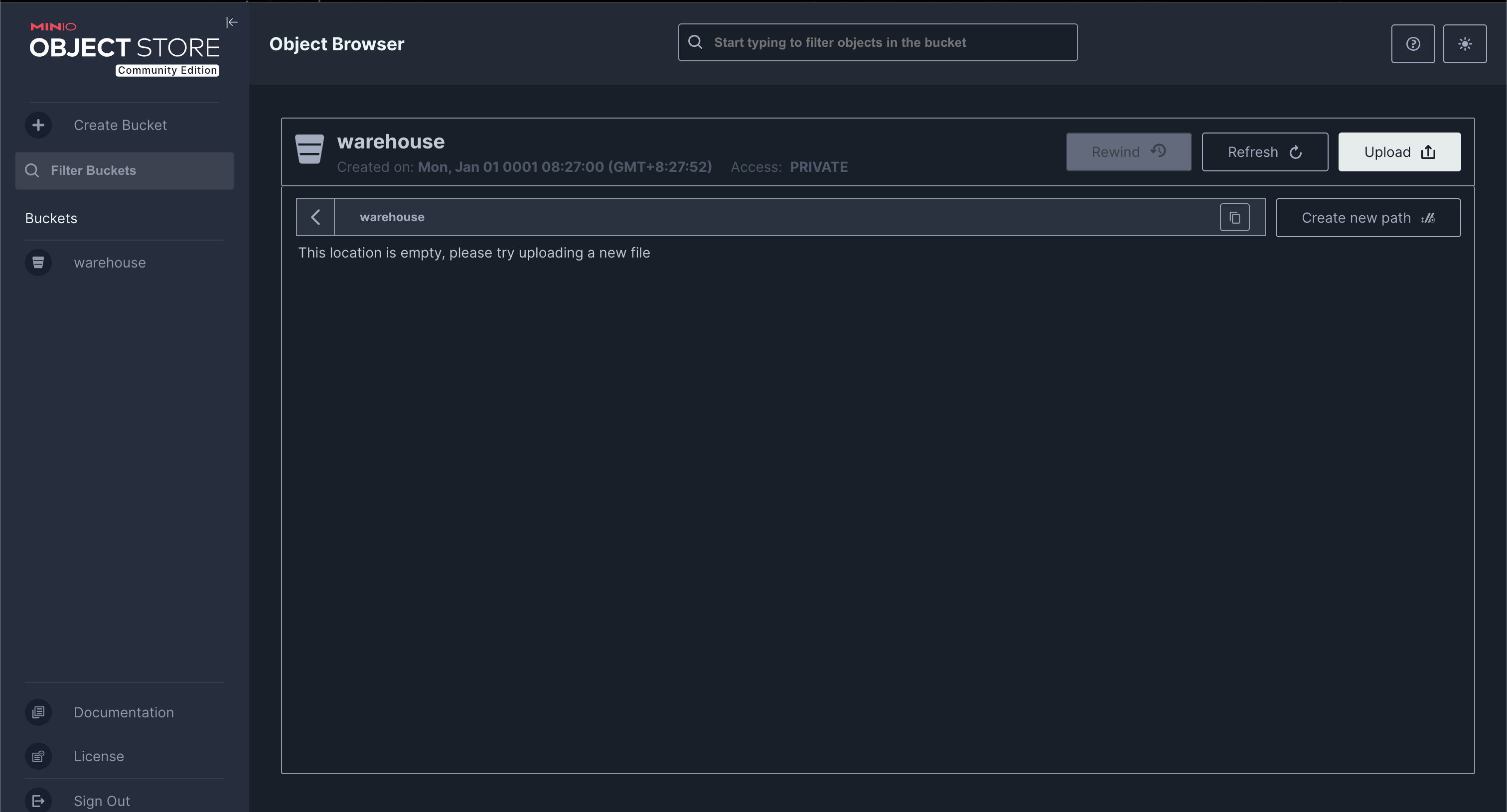 MinIO 에서 아래 이미지와 같이 WebUI 를 제공한다.