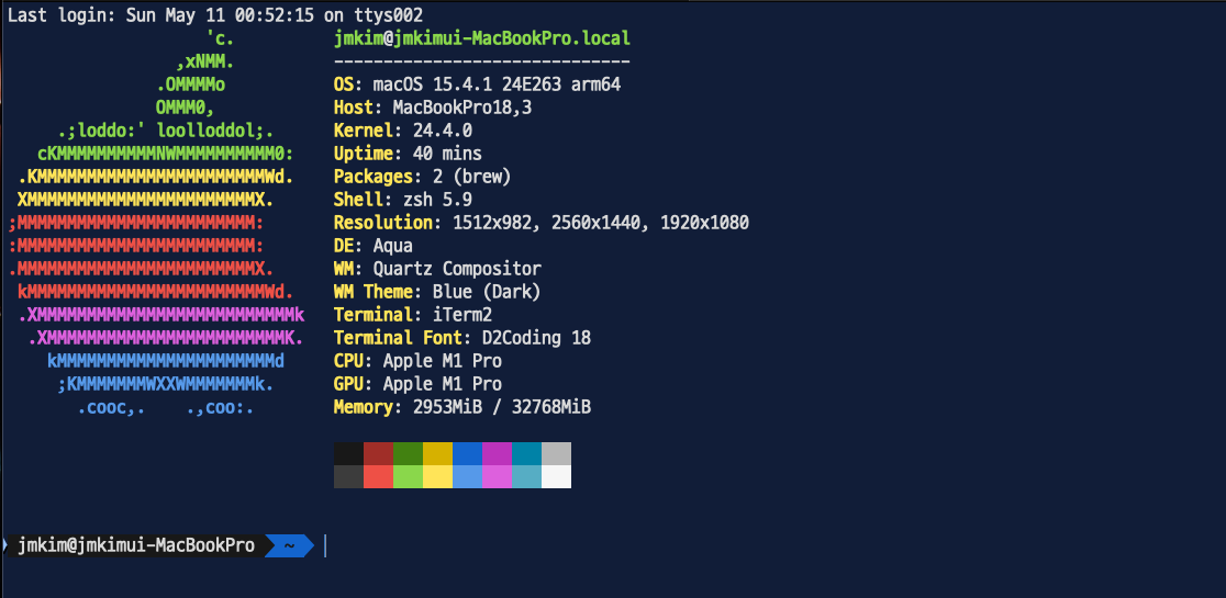$ echo 'eval "$(/opt/homebrew/bin/brew shellenv)"' >> /Users/jmkim/.zprofile