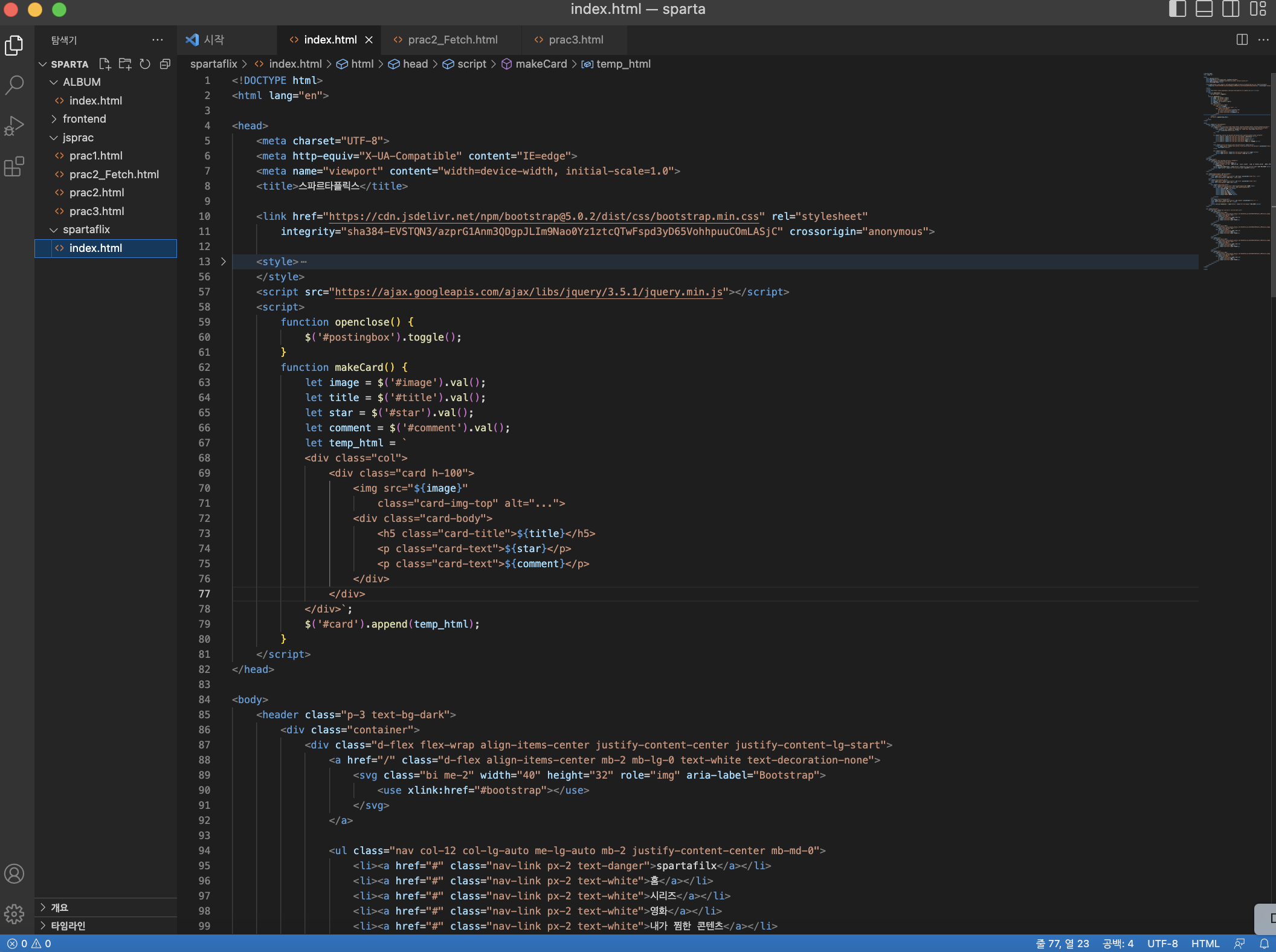 - HTML, Git 알고있던 내용들과 Fetch 등 새로배우는 내용들을 다시 배우며 익혔습니다.