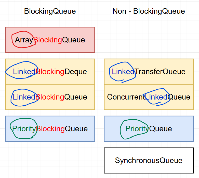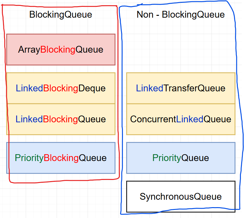 BlockingQueue 랑 Non-BlockingQueue로 나뉠 수 있고