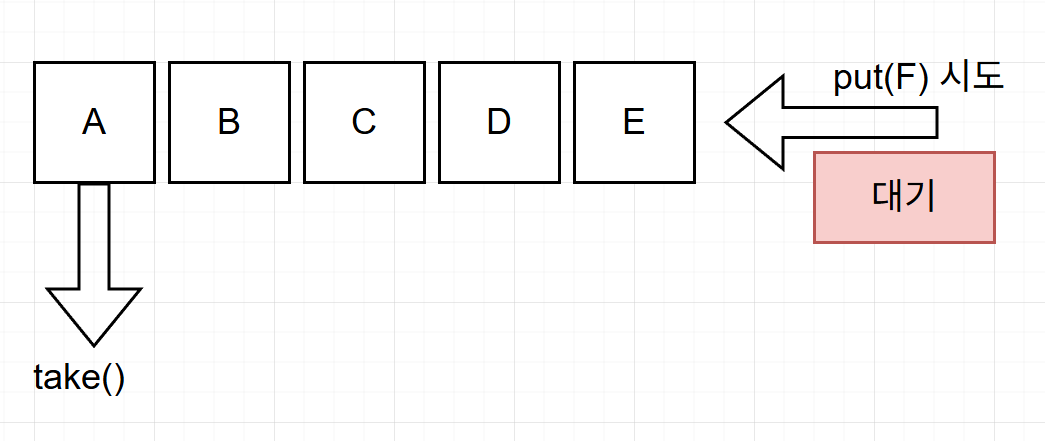 put(): 큐가 가득 차면 대기.take(): 큐가 비어있으면 대기.공통적으로
