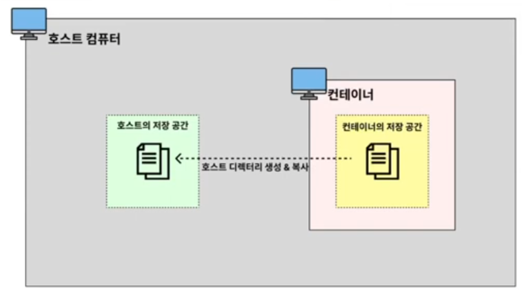 [호스트의 디렉토리 절대경로]에 디렉토리가 존재하지 않는 경우호스트의 디렉터리 절대 경로에 디렉터리를 새로 만들고 컨테이너의 디렉터리에 있는 파일들을 호스트의 디렉터리로 복사해온다.