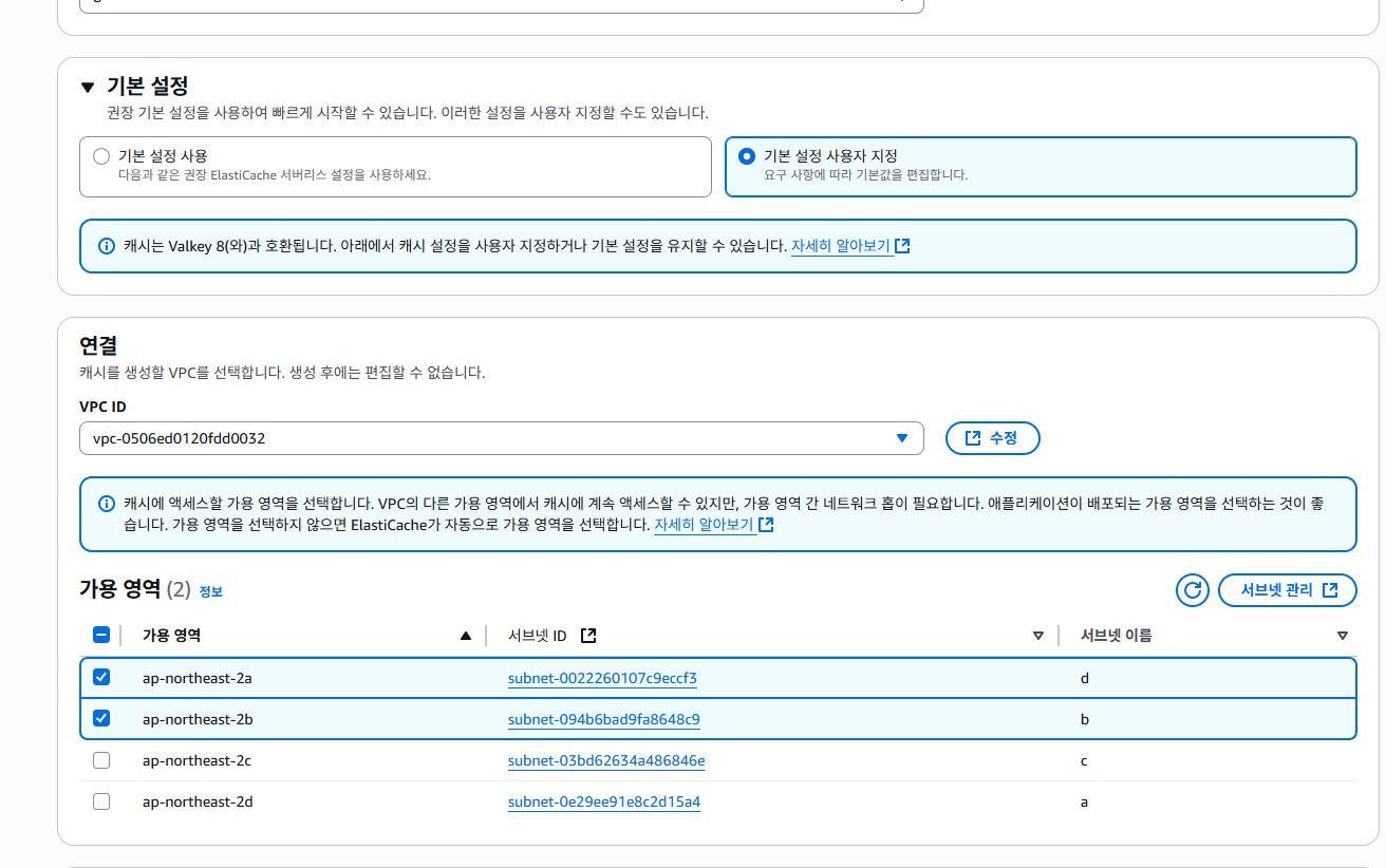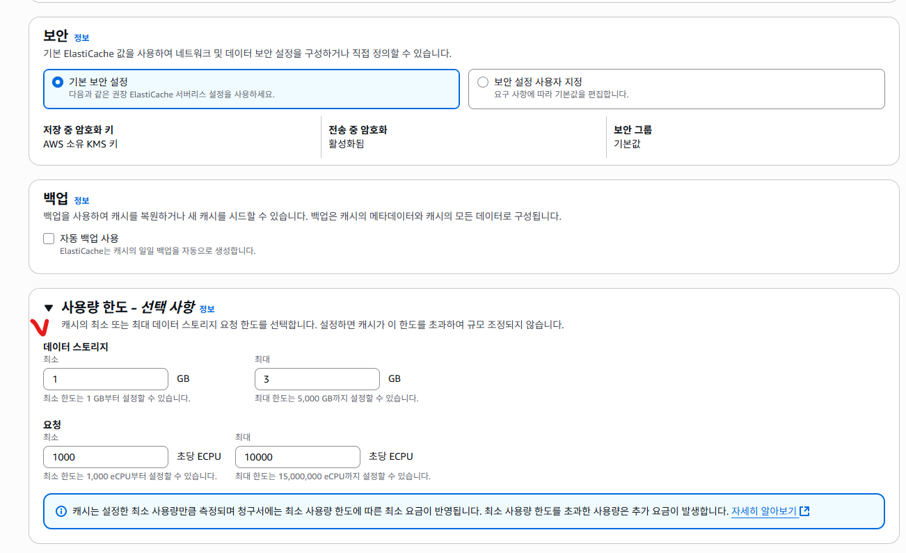 배포준비로 redis 저장공간을 aws 엘라스틱 캐시 시용하려고 했는데