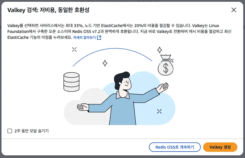 이제는 Redis 말고도 Valkey도 선택할 수 있게 해준다고 함 ㅇㅇㅇ((그래서 엄청 권장하는구나))