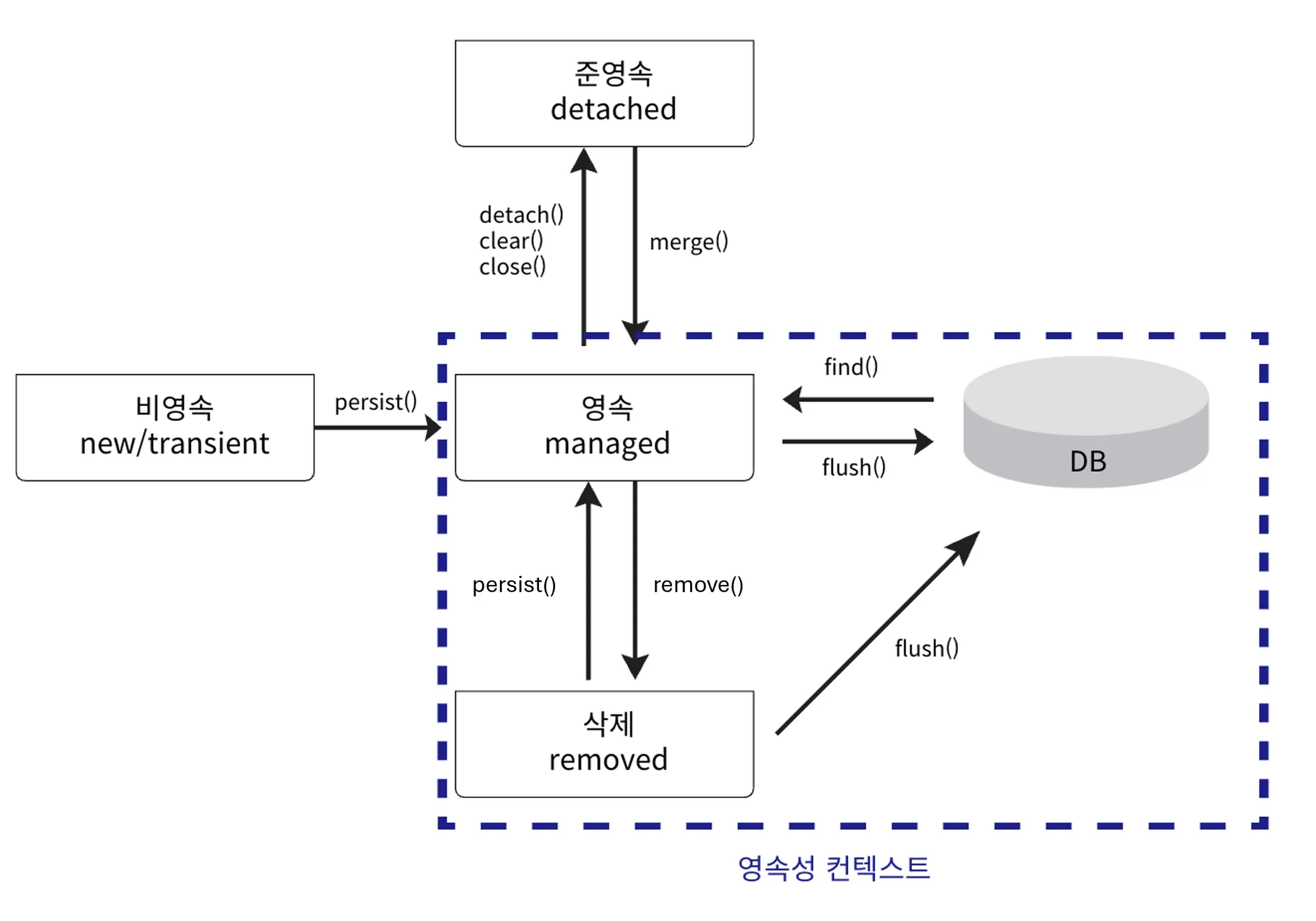 이런 영속성 컨텍스트는 4가지 상태를 가질 수 있다.