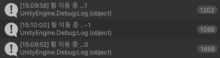 Debug.Log("왼쪽으로 이동 중 ");