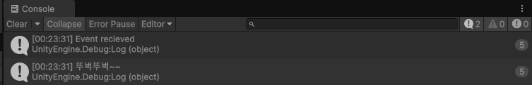 이를 통해 어떤 특정 프레임 지점에서 이벤트를 생성하면 그 시점에 그 이벤트를 유니티 전체에 뿌리게 된다.
