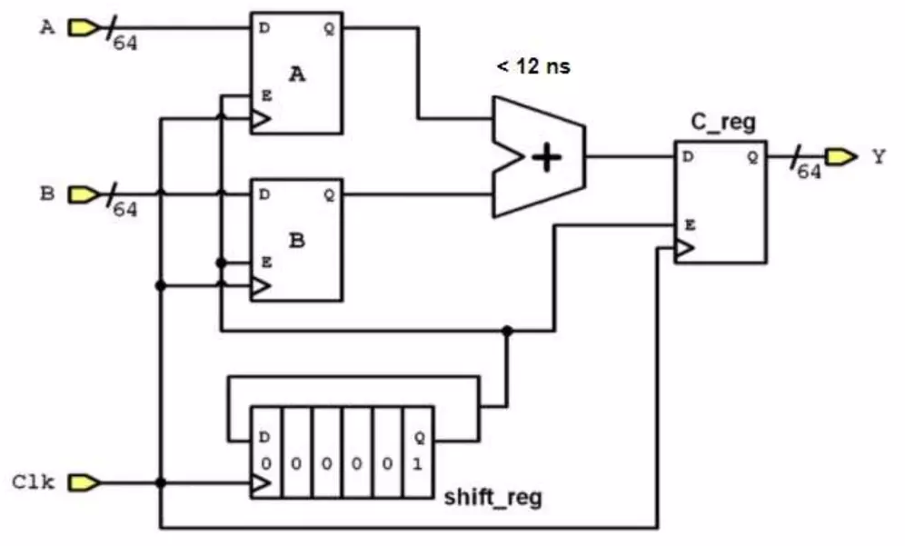 set_multicycle_path -setup 6 -from {A_reg[*] B_reg[*]} -to C_reg[*]