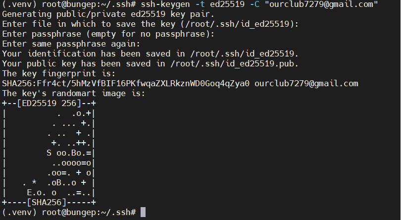 ssh-keygen -t ed25519 -C "ourclub7279@gmail.com"