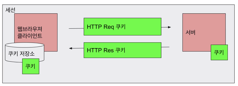 쿠키를 요청하고 받아서 Response를 처리하는 구조이다. HTTP는 기본적으로 연결하는 끊는 방식이기 때문에 어디에서 연결을 시도했는지 알 수 없다.