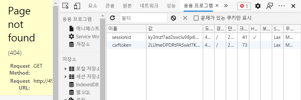 위와 같이 쿠기에 session이 생성된 것을 확인할 수 있다.