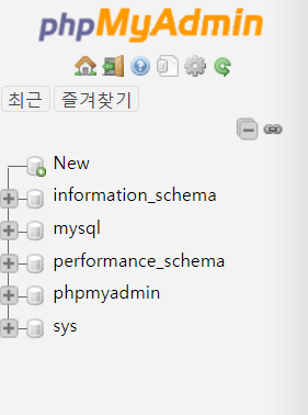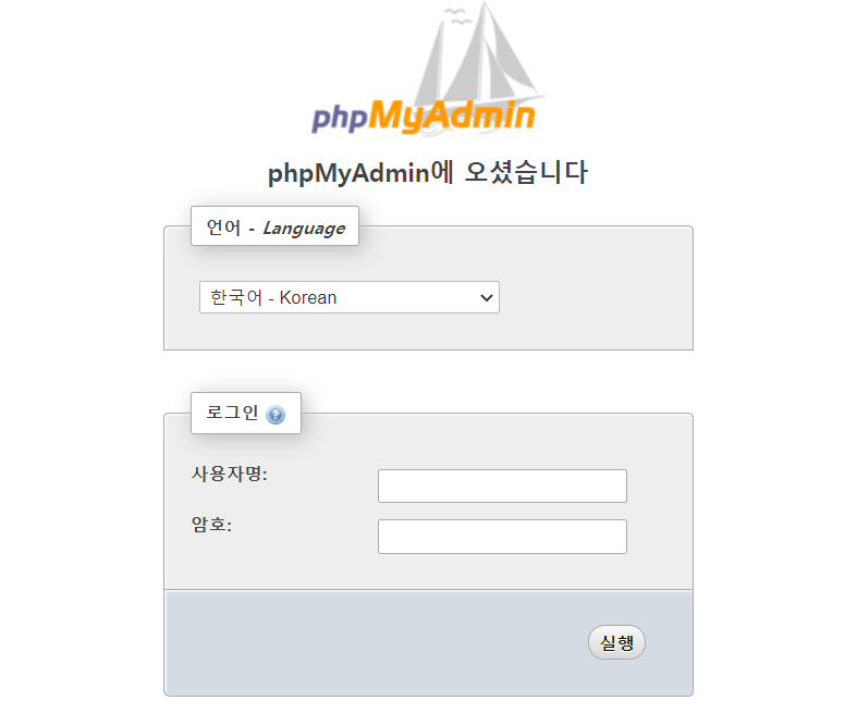 공인IP/phpmyadmin을 브라우저에 검색하면 다음의 창이 뜬다.