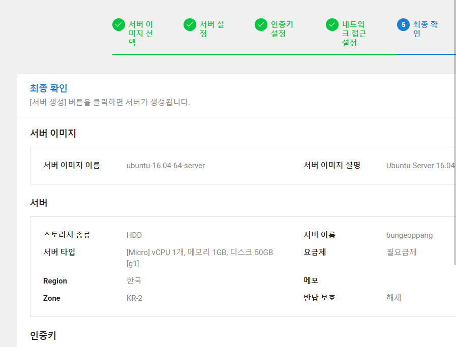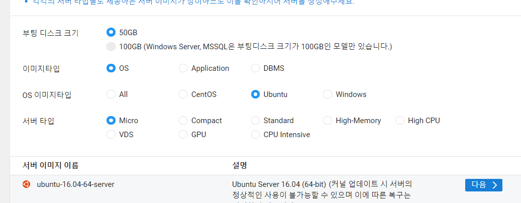 서버 타입으로는 1년간 무료로 이용가능한 Micro를 선택